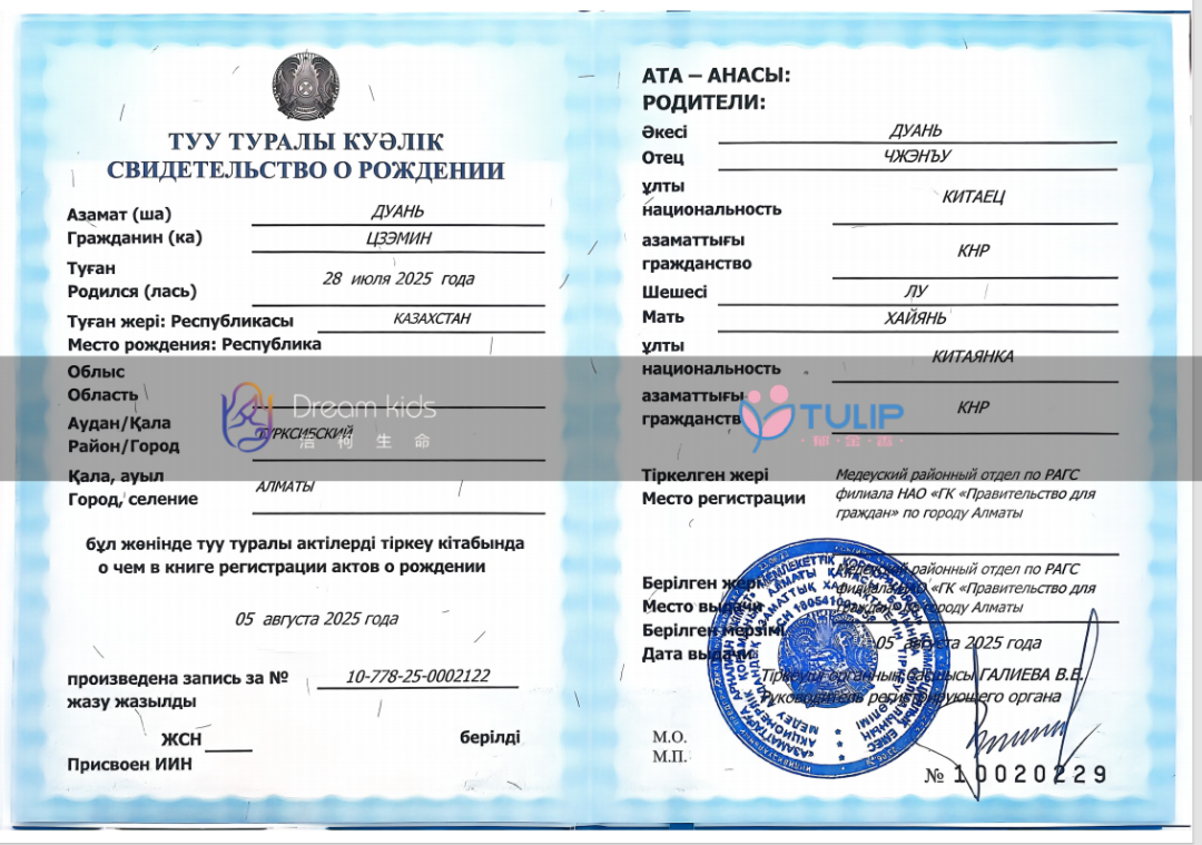宝宝的出生证明:吉尔吉斯斯坦医院出具的原件。这是第一步,也是最关键的外国文件。