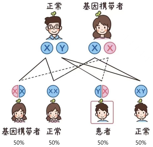 男性因为只有一条X染色体,因此该基因若出现致病变异则可发病,发病率约为每3500-5000名男婴中1例。女性因为有两条X染色体,一般只是致病变异的携带者。