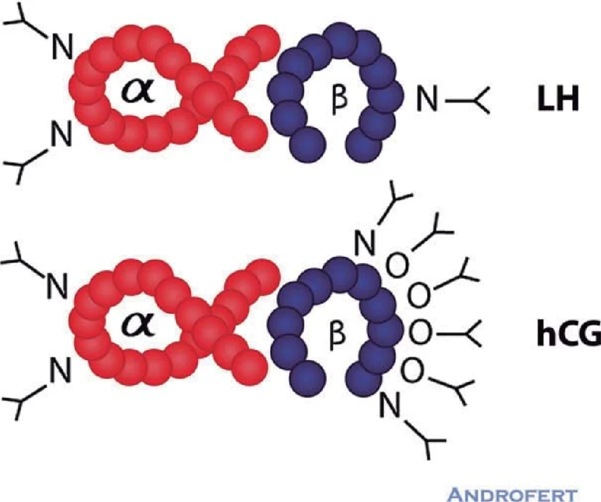 HCG与LH的分子结构与功能高度相似。都由α、β两个亚基组成。
