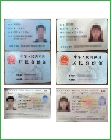 p9:男女双方护照及身份证打印件每份单独打印在一张白纸(共4张)