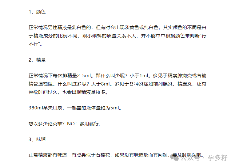 男性的精液由精子和精浆组成,精子是由睾丸产生,约占总量5%,前列腺液、精囊液及尿道球腺分泌物组成精浆,精浆的主要作用是给精子的生存、活动和运输过程提供各种保障。我们直观能看到、闻到的,就是精液的颜色、量、味道以及射精频率。那么江湖传言健康的精液更白精液越多越强是真是假呢?