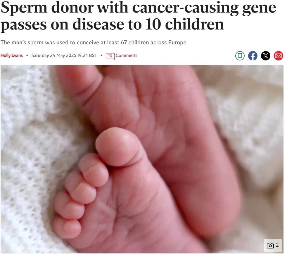 更令人忧心的是,他的精子曾被数十名女性使用,这意味着未来患癌孩子的数量很可能不止10个......