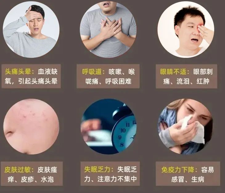 苯是一种致癌物质,人体长期接触会引起中毒反应。轻度苯中毒会出现嗜睡、头痛、头晕、恶心、胸部紧束感等症状,并伴有轻度的黏膜刺激症状;重度苯中毒则会使患者出现兴奋、心律不齐、视物模糊、呼吸急促等症状,甚至因呼吸麻痹而导致神志丧失,乃至死亡。