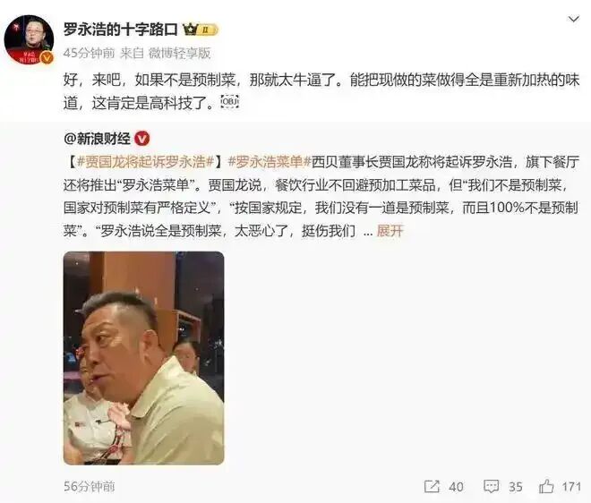 最近,科技圈“段子手”罗永浩和餐饮巨头西贝的贾国龙隔空“怼”上了,争论的焦点正是风口上的预制菜。