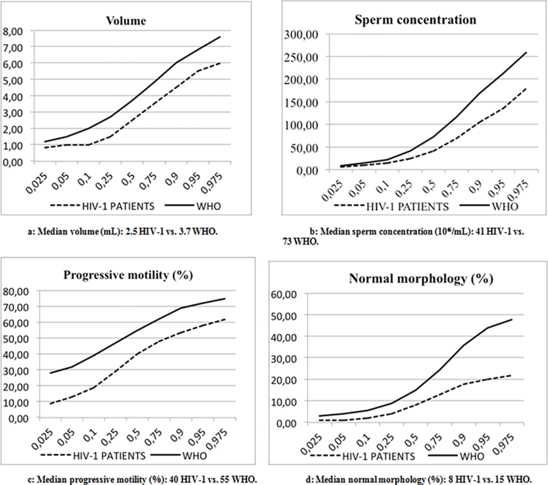 研究表明,与HIV阴性男性相比,未经治疗的HIV阳性男性其精液参数普遍更差,主要体现在以下几个方面:精子数量减少(少精症)、精子活力下降(弱精症)、精子形态异常(畸形精子症)、精液量改变。