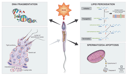 3.应激:HIV感染会增加体内的氧化应激水平,产生过量的活性氧(ROS)。活性氧会攻击精子的细胞膜(脂质过氧化),破坏其DNA完整性,从而导致精子活力下降、形态异常和DNA碎片率增高。高DNA碎片率与受精失败、胚胎质量差和流产风险增加有关。