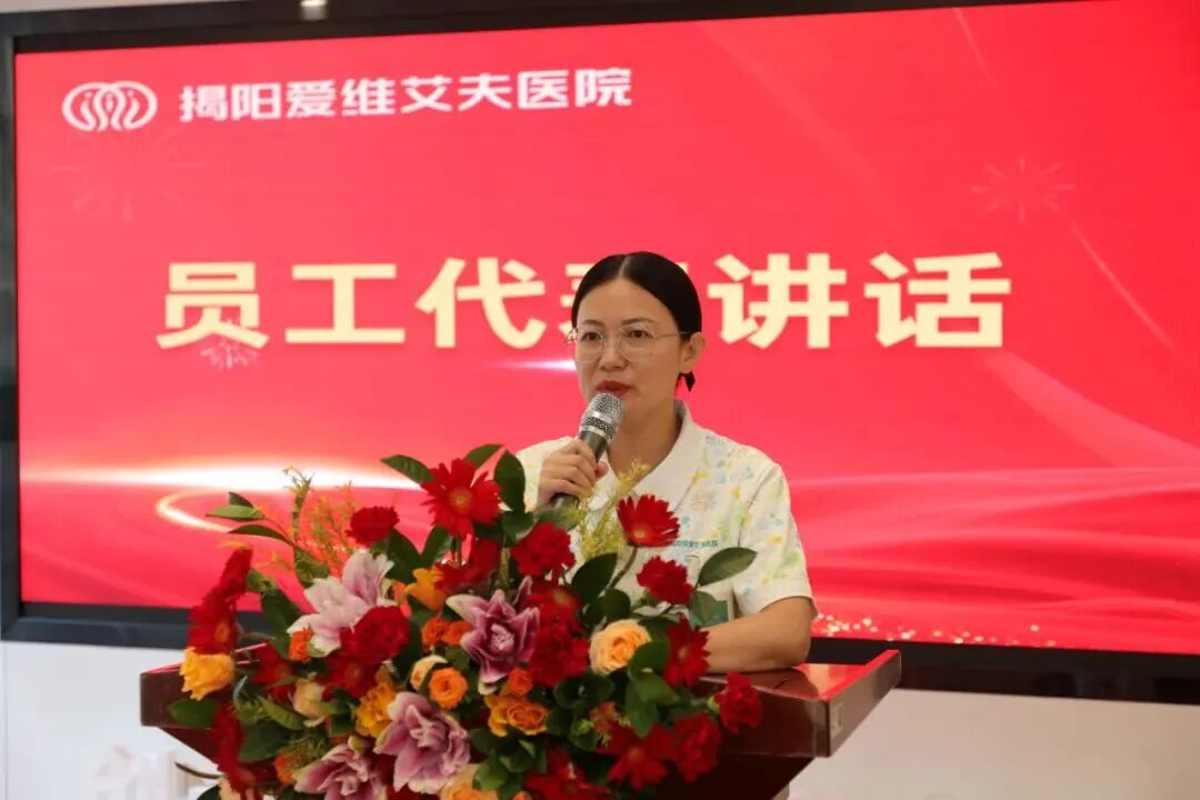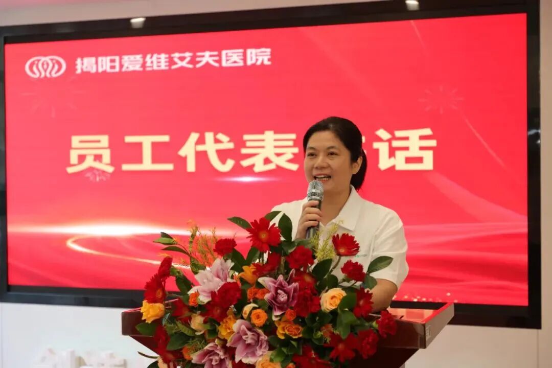员工代表生殖妇科一诊室负责人蔡冰红主任、护士长陈如佳走上前台,分享了他们在辅助生殖道路上的温暖故事。那些日日夜夜的陪伴与坚守,是爱维艾夫人“以患者为中心”的最好诠释。