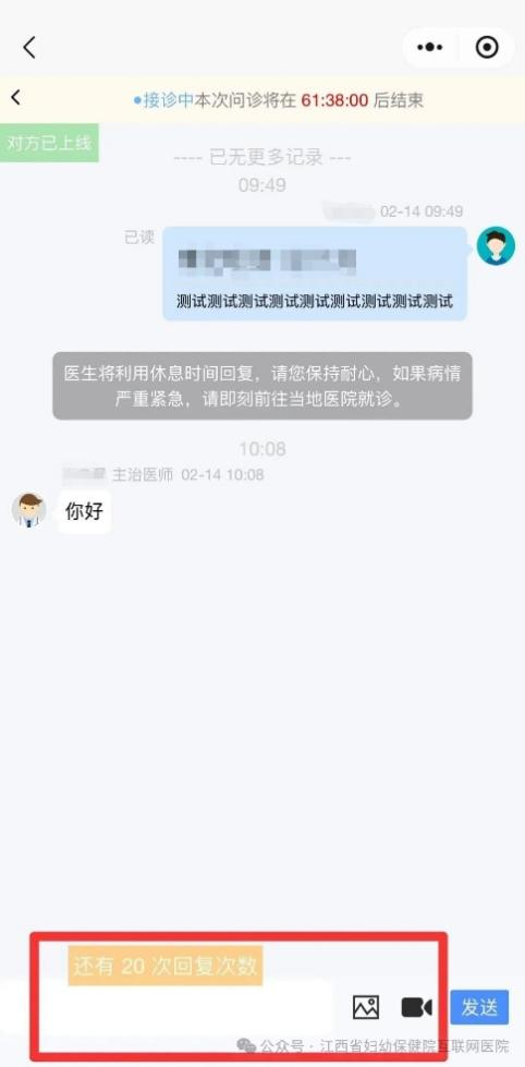 医师接诊后即可开始沟通,可在互联网医院首页“我的问诊”中查看该问诊记录,支持发送文字、图库照片,并可拍摄照片或视频后发送。