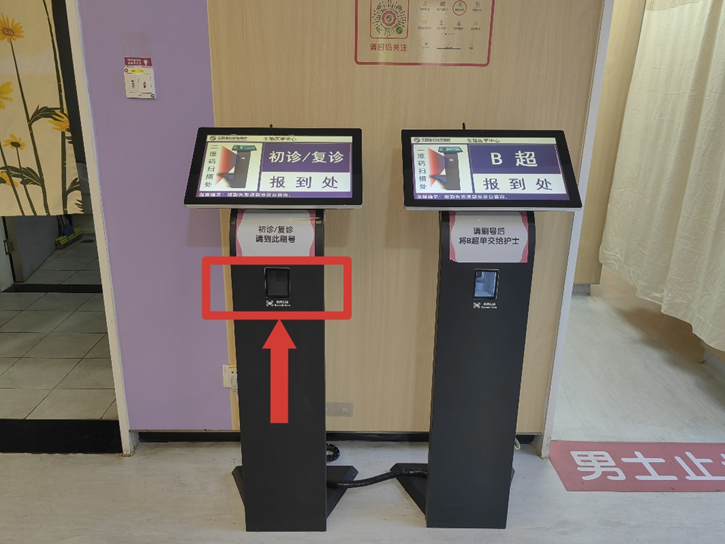 到达医院后,在对应诊疗区域内的“初诊/复诊”报到机上刷就诊健康卡二维码报到,最早报到时间为就诊时段前30分钟。