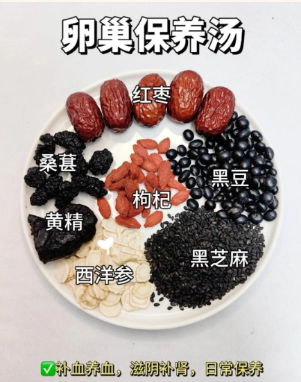 黑豆滋补汤:"肾之谷"黑豆是此期的王者,取黑豆、红枣、桑葚同煮,喝汤吃豆,从根源滋养卵泡发育。