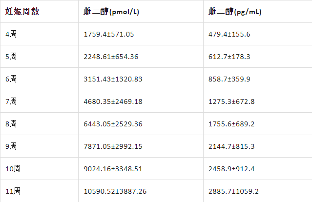 雌二醇E2是早孕妊娠激素的第二个指标,怀孕前期的雌二醇参考值在0-300pg/ml之间。但雌孕激素水平孕期个体差异较大,没有一个绝对的标准,临床上如无腹痛、阴道流血、HCG生长速度正常的话,雌孕激素水平仅作参考。