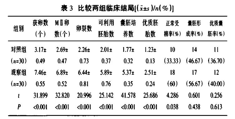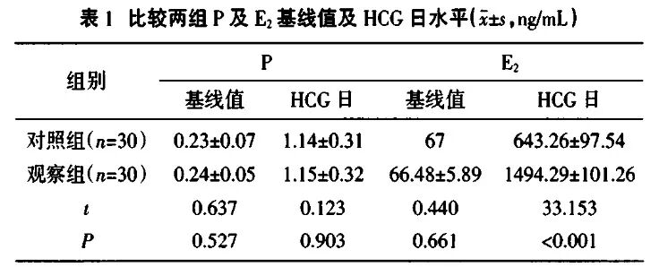 结果发现,两组患者孕酮和雌二醇基线水平及hcg人水平差异均无统计学意义,观察组hcg日雌二醇值显著高于对照组,且差异有统计学意义。