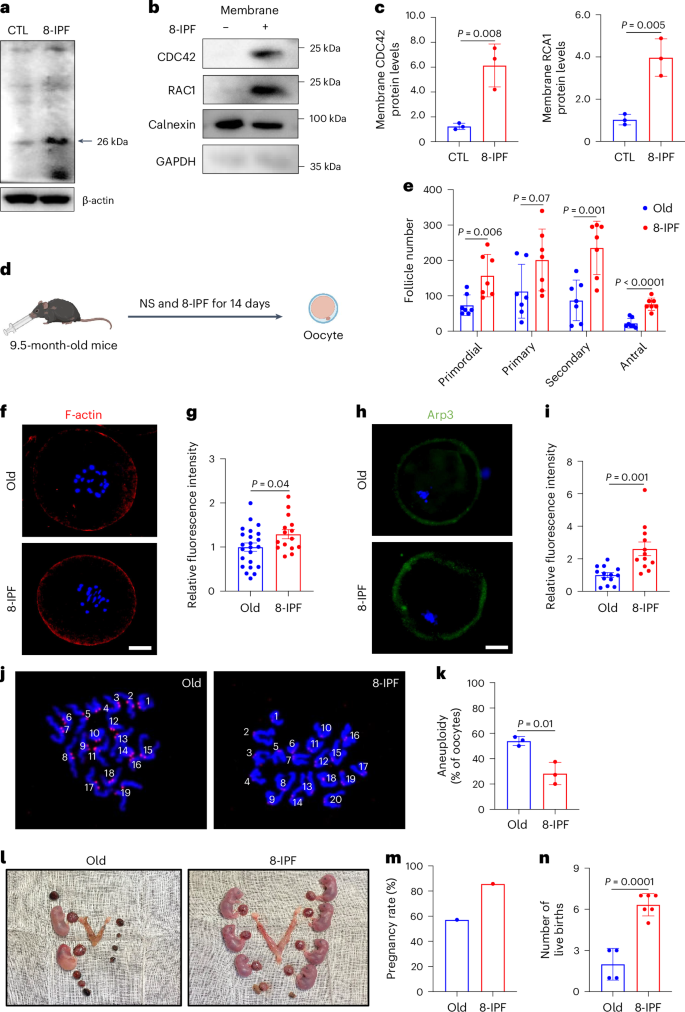 接受8-IPF治疗的高龄鼠妈妈们,它们的卵巢更饱满,卵泡储备,特别是能发育成成熟卵子的窦卵泡数量明显更多。