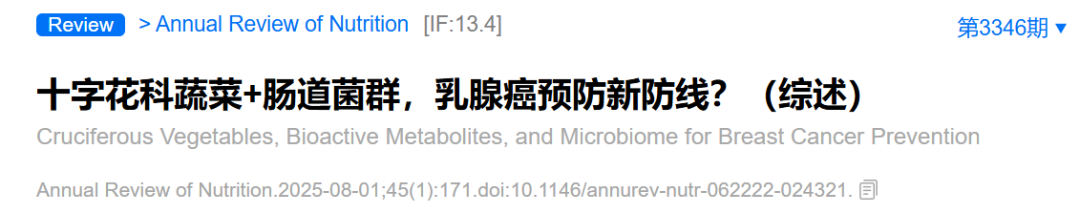 1.Ho E, Wong CP, Bouranis JA, Shannon J, Zhang Z. Cruciferous Vegetables, Bioactive Metabolites, and Microbiome for Breast Cancer Prevention. Annu Rev Nutr. 2025 Aug;45(1):171-195. doi: 10.1146/annurev-nutr-062222-024321. PMID: 40841315; PMCID: PMC12479016.