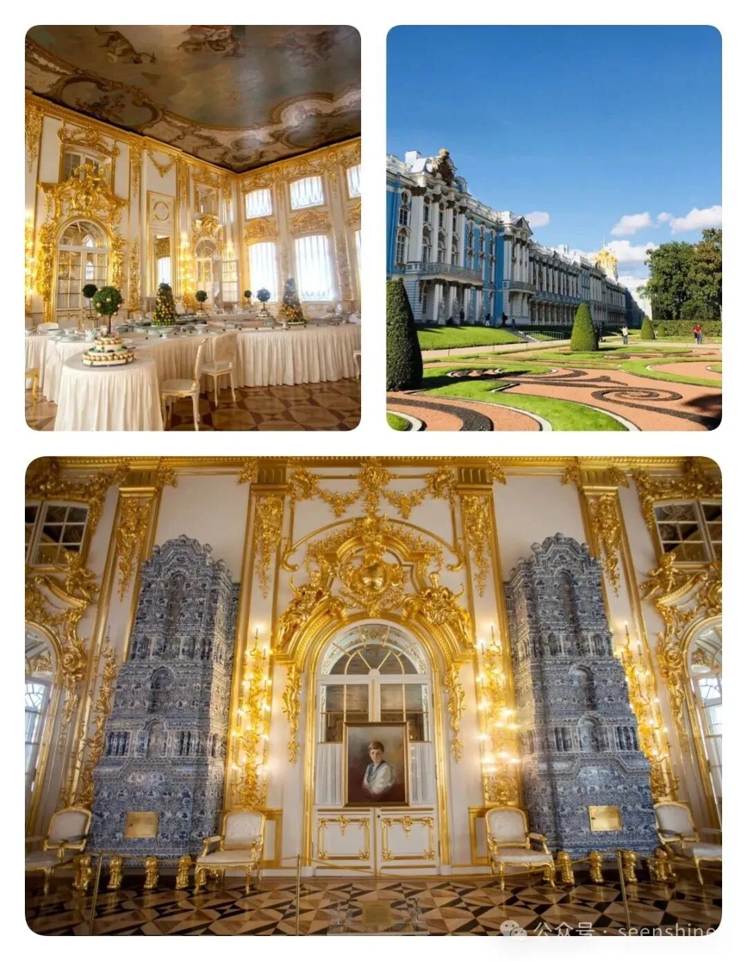 叶卡捷琳娜宫又称凯瑟琳宫,位于圣彼得堡以南约25公里处,是1717年特别为彼得一世的妻子、也是其女儿伊丽莎白女皇、叶卡捷琳娜二世、亚历山大一世及尼古拉二世喜爱的郊外行宫。