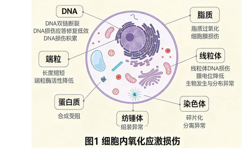 正常情况下,人体的抗氧化系统(包括超氧化物歧化酶SOD、过氧化氢酶CAT、维生素C/E、褪黑素等)会与活性氧维持动态平衡。但当活性氧过量产生,或抗氧化系统功能下降时,这种平衡被打破,就会引发“氧化应激”状态。此时,过量的活性氧会攻击细胞内的蛋白质、脂质、DNA等生物大分子,造成组织损伤,这也是卵巢衰老的核心机制之一。